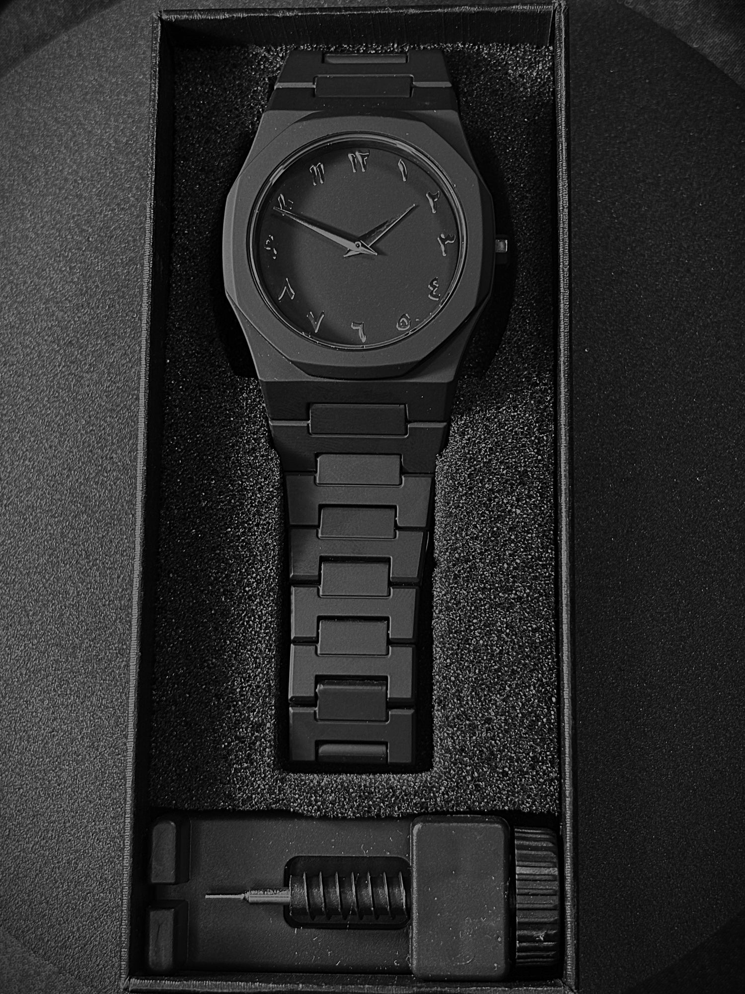 This all-black watch captures the essence of simplicity with a bold, modern touch. The clean dial creates a balanced design that feels both strong and refined. Versatile and timeless, it adapts seamlessly from everyday wear to special occasions, making it a statement piece for any collection.