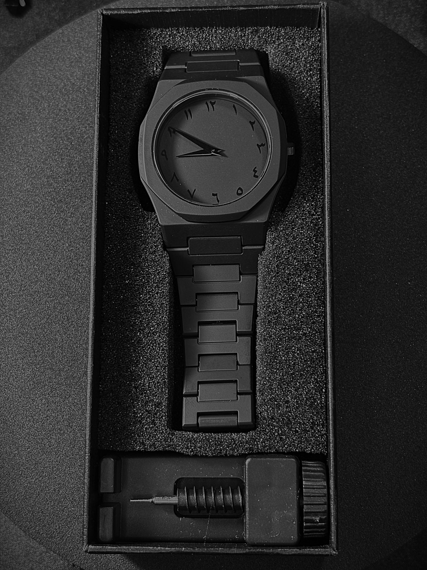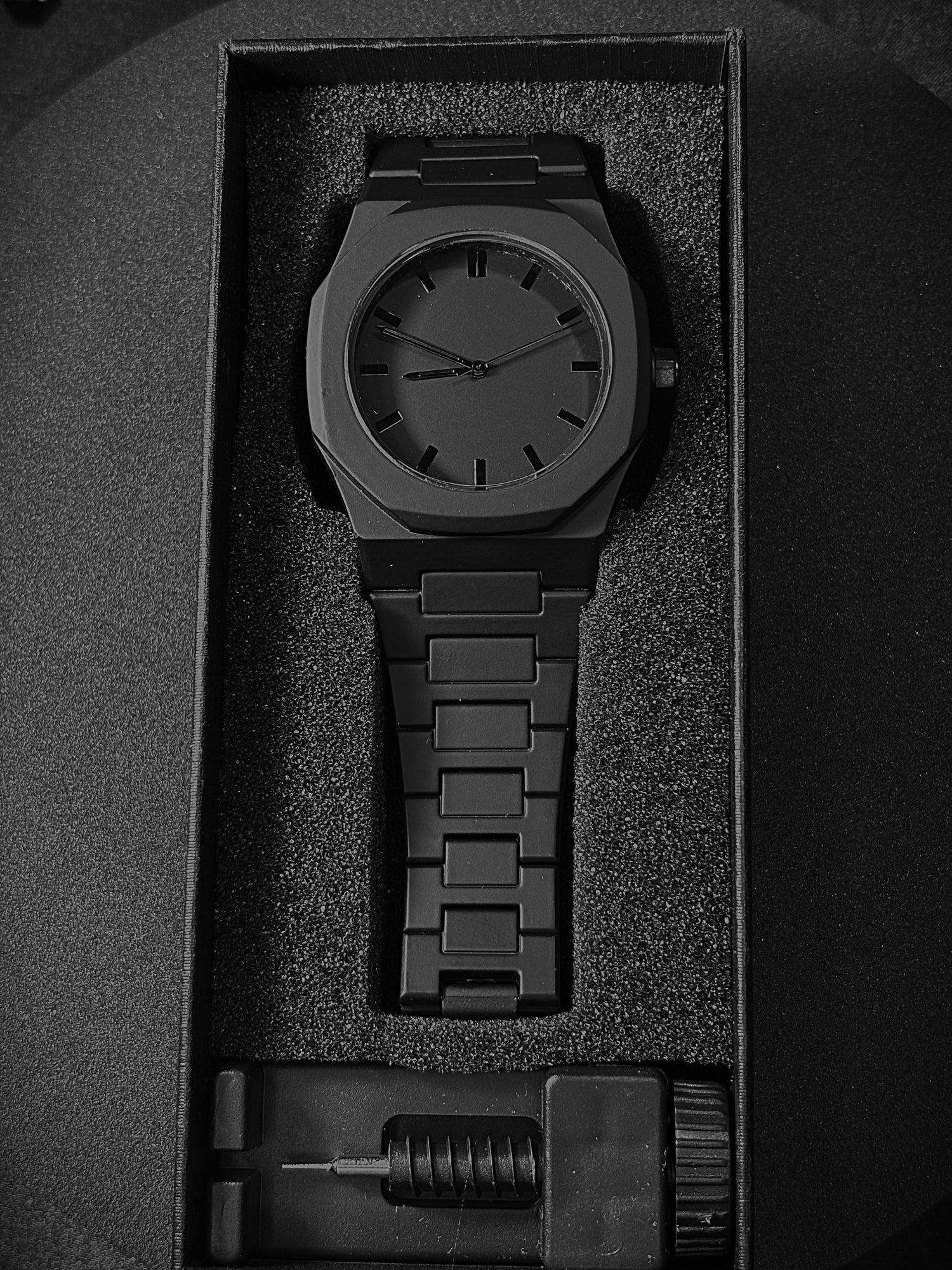 This all-black watch captures the essence of simplicity with a bold, modern touch. The clean dial creates a balanced design that feels both strong and refined. Versatile and timeless, it adapts seamlessly from everyday wear to special occasions, making it a statement piece for any collection.