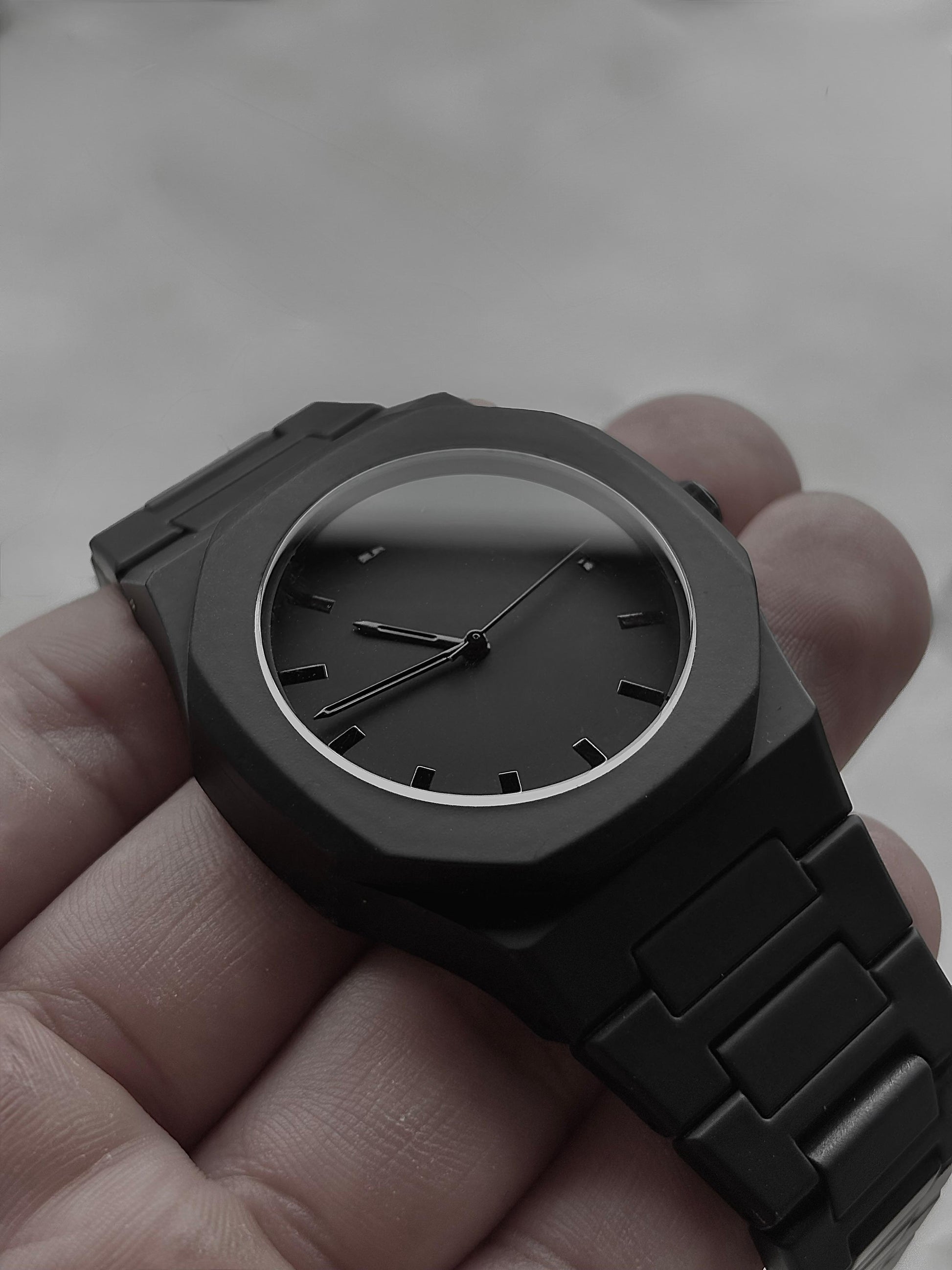 A total black watch that embodies minimalism and power. Bold lines, essential design, and timeless style: the perfect companion for those who want to stand out with class.